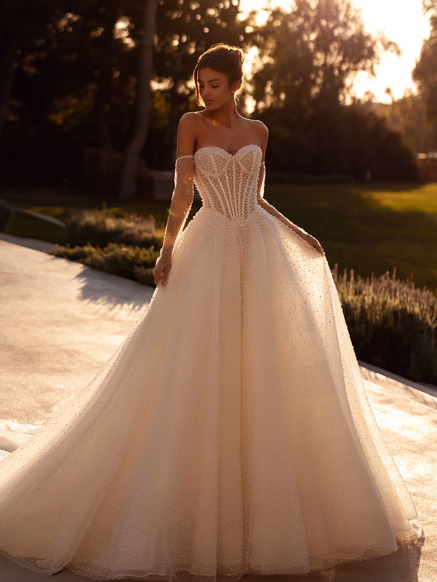 Durch die Kombination aus enganliegendem Oberteil und weitem glockenförmigem Rock macht das Princess-Brautkleid Mädchenträume wahr! Der meist höher liegende volle Rock betont die Taille und kaschiert Problemzonen gekonnt. Prinzessinnen-Hochzeitskleider verzaubern durch ihren voluminösen, mehrlagigen Tüll-Rock mit meist ausladender Schleppe und lassen die Braut an ihrem Hochzeitstag königlich strahlen.